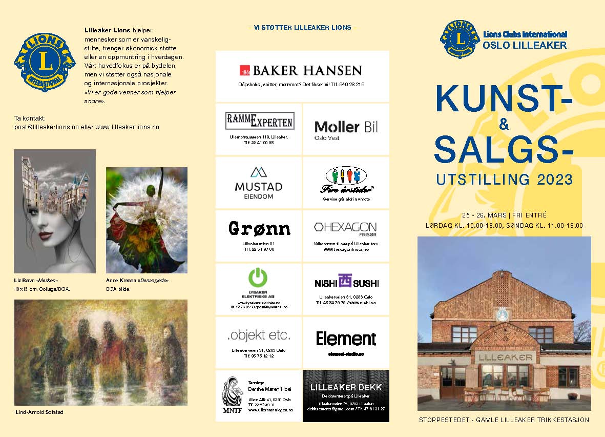 Lilleaker Lions har som overordnet mål å hjelpe mennesker som er vanskeligstilte, trenger økonomisk støtte eller en oppmuntring i hverdagen. Kunstutstillingen er en av flere inntektsbringende aktiviteter som gjør vårt humanitære arbeid mulig. Inntekten går uavkortet til veldedige formål. Vårt hovedfokus er å gi støtte i nærområdet. Vi har god kontakt med bydelen og lokale institusjoner. I tillegg støtter vi nasjonale og internasjonale hjelpeprosjekter.