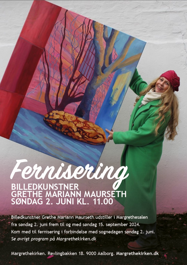 Den smukke Margrethe kirken, med Margrethe salen, viser et udvalg af mine malerier. Det er motiver fra nærmiljøet, som kapellet på kirkegården, Kridtgraven, vestbyen og Hammerværket. Malerierne er olie eller akryl på lærred. De er alle til salg, prisliste ligger tilgængelig i udstillingen.