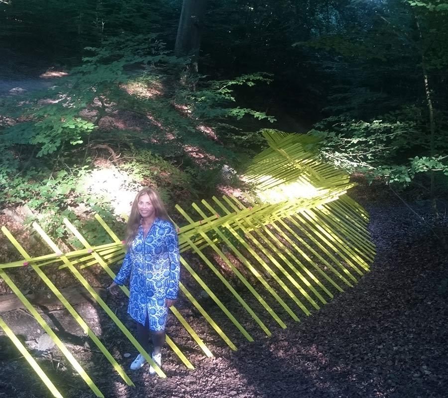En frodig, smuk, mystisk og ildevarslende billedkunstnerisk INTERVENTION i parken/haven/skoven.